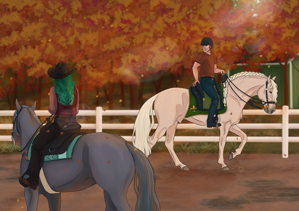 "Hieno syksyisen harmaa tunnelma, ratsukko vaikuttaa valmiilta siihen, mitä syksyn jälkeen on tullakseen."